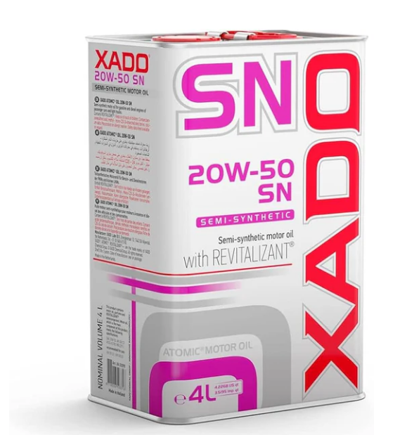 Description for XADO ATOMIQ Semi Synthetic Oil SAE 20W-50 SN, 4 L Can, API SN/CF ACEA A3/B3, High Viscosity, REVITALIZANT Nano Particles, For Gasoline And Diesel Car Engines, For Dynamic Operating Modes | XA 20290